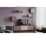 Небольшой настенный шкаф для гостиной Сириния. Открытый шкаф с полками выполнен в сочетании серого и розового цветов.