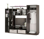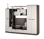 Недорогая стенка в гостиную Вега с платяным шкафом и витриной для посуды. Гостиная Вега отличается вместительностью и функциональностью, что особенно важно для малогабаритных квартир.