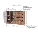 - Комод с 4 выдвижными ящиками, открытыми и закрытыми полками (ШхВхГ): 1400х950х400 мм;