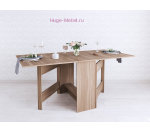 Недорогой стол книжка в цвете ясень шимо темный (дерево кофейного цвета). Стол имеет 3 положения: полностью сложенный, разложенный наполовину или полностью разложенный. Устанавливается на пластиковые подпятники, предохраняющие напольные покрытия от повреждения.