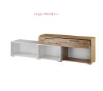 Большая ТВ тумба для гостиной Альберо с тремя откидными створками и двумя выдвижными ящиками. Тумба выполнена в сочетании белого цвета и золотистого дерева, металлические черные ручки. Тумбу для телевизора можно дополнить навесными полками и пеналами из той же серии. Длина верхней крышки 130 см, общая длина тумбы 210 см.