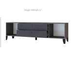 Современная ТВ тумба шириной 180 см с двумя выдвижными ящиками. ТВ тумба с матовыми фасадами МДФ темного цвета гранит, фасады ящиков с фрезеровкой, корпус в цвете графит. За двумя распашными дверцами тумбы пространство для хранения без полок.