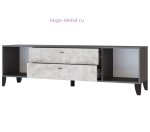 Современная ТВ тумба шириной 180 см с двумя выдвижными ящиками. ТВ тумба с матовыми фасадами МДФ серого цвета мальта, корпус в цвете графит. За двумя распашными дверцами тумбы пространство для хранения без полок.