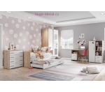 Недорогая выкатная тумба для письменного стола Бланка. Тумба для детской комнаты выполнена в тех же цветах, что и остальная мебель Бланка: корпус дуб сонома и белый матовый фасад. Направляющие ящиков металлические роликовые.