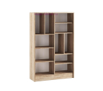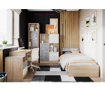 Невысокий пенал с открытыми и закрытыми полками из серии мебели для детской Колибри лофт. Пенал выполнен в стильном сочетании цветов и фактур: светлое дерево, камень и белый глянец.