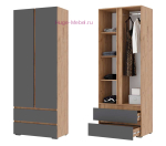 - Шкаф со штангой, полками и выдвижными ящиками (ШхВхГ): 802х2100х460 мм;