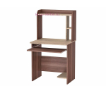 Недорогой компьютерный стол небольшого размера с выдвижной полкой под клавиатуру на роликовых направляющих и надстройкой. Удобная полка над столом позволит хранить канцелярские принадлежности и документы.