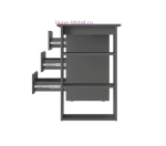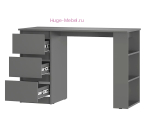 Небольшой удобный письменный стол с тремя выдвижными ящиками подходит для работы и учебы. Стол серого цвета можно собрать на правую и левую стороны, длина стола 115 см. Стол можно использовать как компьютерный. Ящики стола с шариковыми направляющими полного выдвижения подходят для канцелярских принадлежностей, тетрадей и документов. Опора стола в виде открытых полок увеличивает полезное пространство для хранения. Столы выпускаются в двух популярных цветах: графит и белый.