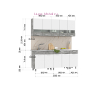 Недорогая кухня Денвер длиной 2 метра представляет собой готовый к монтажу комплект кухонной мебели. В стоимость кухонного гарнитура входит столешница "Антарес" на модули 40 и 80 см,  толщина столешницы 26 мм. В комплект входят 6 кухонных шкафов 40+80+80 см.