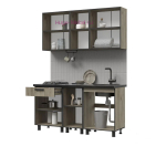 Недорогая кухня Эдинбург длиной 1.6 метра представляет собой готовый комплект кухонной мебели. В стоимость кухонного гарнитура входит цельная черная столешница толщиной 38 мм.