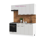 Недорогой кухонный гарнитур шириной 1.8 метра продается в комплекте со столешницей. Кухня 180 см с фасадами белого цвета из качественного МДФ с матовым покрытием с фрезеровкой. Готовую кухню Альфа можно дополнить другими модулями из этой же серии, например напольными пеналами, фасадами для посудомоечных машин, дополнительными кухонными шкафами. Кухня полностью готова к установке, вся фурнитура и нижний цоколь в комплекте.