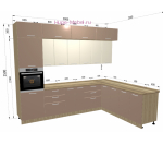 Современная угловая кухня с антресольными шкафами. Размер комплекта 300х220 см может быть изменен по размерам вашей кухни - обращайтесь для консультации к нашим менеджерам.