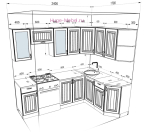 - Размер кухни: 170 х 240 см (сборка универсальная, на правую и левую стороны);