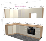 Угловая кухня 130х280 см с матовыми фасадами МДФ. Кухни Катрин выпускаются в нескольких цветах, цвет можно изменить без изменения стоимости. Кухня модульная и её размеры или комплектацию можно изменить в соответствии с вашими пожеланиями. Цвет корпуса можно заменить на матовый белый.