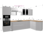 Угловая кухня 335х170 см с матовыми фасадами белого цвета из МДФ. Кухни Катрин выпускаются в нескольких цветах, цвет можно изменить без изменения стоимости. Кухня модульная и её размеры или комплектацию можно изменить в соответствии с вашими пожеланиями. Цвет корпуса можно заменить на золотистое дерево.