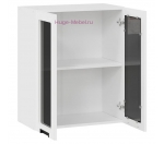 Кухонный шкаф верхний со стеклом для модульной кухни Сахара с фасадами МДФ в цвете холст белый. Размеры шкафа: