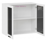 Кухонный шкаф верхний со стеклом для модульной кухни Сахара с фасадами МДФ в цвете холст белый.