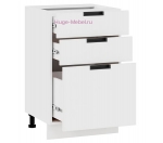Кухонный шкаф нижний с тремя ящиками для модульной кухни Сахара с фасадом МДФ в цвете холст белый.