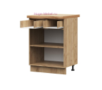 В комплектацию входит: корпус, фасад, ручки, фурнитура для сборки, пластиковые регулируемые ножки, нижний цоколь из ЛДСП. Нижний кухонный шкаф с ящиком продаётся без столешницы, схема сборки кухонного шкафа в комплекте.