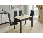 Современный обеденный раскладной стол на качественных опорах из МДФ. Столешница стола из стекла лакобель.