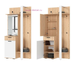 Шкаф и прихожую можно менять местами, модуль прихожей собирается как на правую, так и на левую сторону. шкаф оснащен штангой для верхней одежды и двумя полками. Модуль прихожей включает в себя настенную вешалку, тумбу для обуви с выдвижным ящиком и зеркало. за зеркальной створкой полки.