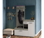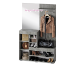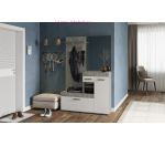 Недорогая современная прихожая с вешалкой, зеркалом и несколькими отсеками для хранения обуви и одежды. Небольшую прихожую можно дополнить распашным шкафом или комодом в том же цвете.