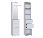 Недорогая прихожая белого цвета состоит из двух предметов: вешалки с тумбой для обуви и высокой тумбой с зеркалом. Ширина прихожей 135 см. Комплект можно дополнить шкафом для одежды или пеналом с ящиками. Глубина прихожей всего 41 см, её можно использовать в небольших квартирах и узких коридорах. Мебель для прихожей Плейона с матовым покрытием с фактурой древесные поры, ручки заменяют скошенные фасады.