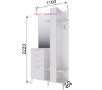 Центральная секция для модульной прихожей Толедо в белом цвете может быть куплена как отдельный предмет или в составе комплекта мебели. Прихожая Толедо шириной 110 см представляет собой готовый комплект для прихожей с зеркалом, комодом и вешалкой для одежды.