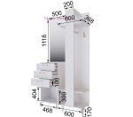 - Прямая штанга для вешалок, 3 выдвижных ящика на направляющих полного выдвижения и крючки для одежды обеспечивают удобное размещение вашей одежды и аксессуаров;