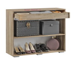 Вместительная тумба для обуви Наоми с ящиком на шариковых направляющих (полного выдвижения) и двумя распашными створками, за которыми находится полка. Обувница имеет небольшую глубину и может быть использована в узком коридоре или небольшой прихожей. Тумбу Наоми можно купить в комплекте со шкафами и вешалкой для прихожей.