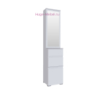 Тумба с зеркалом для прихожей белого цвета. Высокая тумба с двумя выдвижными ящиками и нижним отсеком для обуви, за зеркалом полочки для хранения полезных мелочей. Скошенные фасады заменяют ручки, белое матовое покрытие с тиснением древесные поры, лаконичный дизайн подходит для любого интерьера. Мебель для прихожей Плейона может быть дополнена шкафом, пеналом, вешалкой.