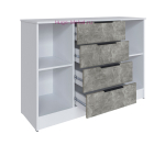 Длинный комод 1.3 метра с 4 выдвижными ящиками в центре и двумя дверцами по бокам. Комод белого цвета со светло-серыми фасадами ателье. Вместительный комод высотой 92 см с полностью закрытой системой хранения, за распашными дверцами по одной полке. Комод входит в серию мебели Мадрид, подходит для любого помещения и сочетается со шкафами, тумбами, стеллажами в том же цвете. Комоды Мадрид выпускаются в нескольких цветах и размерах, оснащены современной фурнитурой с механизмом полного выдвижения.