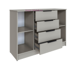 Длинный комод 1.3 метра с 4 выдвижными ящиками в центре и двумя дверцами по бокам. Вместительный комод высотой 92 см в цвете кашемир с полностью закрытой системой хранения, за распашными дверцами по одной полке. Комод входит в серию мебели Мадрид, подходит для любого помещения и сочетается со шкафами, тумбами, стеллажами в том же цвете. Комоды Мадрид выпускаются в нескольких цветах и размерах, оснащены современной фурнитурой с механизмом полного выдвижения.