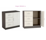 Недорогой комод Бася с тремя ящиками и дверцей с полкой внутри. Комод подходит для спальни Бася и сочетается с другой мебелью фабрики Стендмебель в том же цвете.