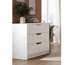 Недорогой комод белого цвета с тремя вместительными ящиками. Компактный комод шириной 80 см подходит для спальни, детской комнаты, гостиной и прихожей и может быть дополнен другой мебелью серии Руна. Удобный комод без ручек с надежными шариковыми направляющими полного выдвижения подходит для любого интерьера благодаря лаконичному современному дизайну и белому цвету.