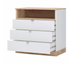 Недорогой комод 90 см с 3 выдвижными ящиками и открытой нишей. Комод с фасадами белого цвета подходит для спальни, детской и прихожей.