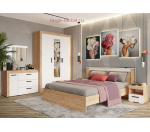 Недорогая двуспальная кровать продается в комплекте с настилом из ДСП. Кровать входит в серию мебели для спальни Адель и может быть приобретена в составе спального гарнитура. Каркас кровати выполнен в популярном оттенке дуб крафт золотой и подобрать мебель к кровати не составит труда. Декоративная планка в изголовье белого цвета. Кровать продается без матраса, его необходимо покупать отдельно. Рекомендуемая высота матраса: 120-200 мм, рекомендуемая нагрузка на спальное место: до 100 кг.