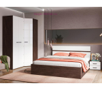 Кровать с размером спального места 160х200 см в цвете венге с изголовьем белого цвета. Двуспальная кровать продается в комплекте с основанием из ЛДСП, матрас не входит в стоимость. Для кроватей Либерти подходят матрасы с любым наполнением. В изголовье кровати накладки из глянцевого МДФ обтекаемой формы. Кровать сочетается с другими предметами из модульного спального гарнитура Либерти.
