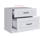 Классический дизайн гарнитура с отделкой белый дуб, массивными металлическими ручками, шариковыми направляющими ящиков, петли без доводчиков. Кровати для спальни с высоким изголовьем выпускаются в двух размерах (140 и 160 см шириной) и могут быть укомплектованы разными типами оснований под матрас: основание из ЛДСП, ортопедическое на независимых опорах или ортопедическое с подъемным механизмом и ящиком для хранения белья.