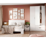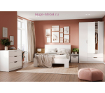 Спальный гарнитур белого цвета с двуспальной кроватью, вместительным шкафом, двумя прикроватными тумбами и комодом станет отличным решением для создания современного и комфортного интерьера. Модульная спальня Руна может быть дополнена столом, стеллажами или ТВ тумбой в том же стиле. Мебель для спальни Руна отличается простыми формами, роль ручек выполняют сами створки с вырезом, качественные направляющие выдвижных ящиков увеличивают срок службы мебели.