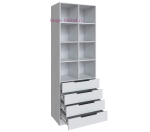 Стеллаж для книг и документов с открытыми полками и 4 выдвижными ящиками. Ширина шкафа 80 см, высота 230 см. Шкаф стеллаж Мадрид выпускается в нескольких цветах, в том числе в универсальном белом цвете. Стеллаж сочетается с другими шкафами и пеналами серии Мадрид.