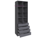 Стеллаж для книг и документов с открытыми полками и 4 выдвижными ящиками. Ширина шкафа 80 см, высота 230 см. Шкаф стеллаж Мадрид выпускается в нескольких цветах, в том числе в сером цвете графит. Стеллаж сочетается с другими шкафами и пеналами серии Мадрид.