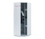 Недорогой угловой шкаф Сальма с глянцевым фасадом. Белый угловой шкаф для спальни Сальма с полками и штангой для одежды может быть дополнен другими шкафами из этой же серии.
