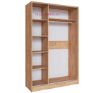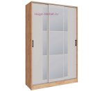 Недорогой шкаф купе шириной 140 см и высотой 220 см с тремя раздвижными дверьми и зеркалом. Внутри шкафа стационарная штанга и отсек с полками. Зеркала с фацетной обработкой. Компактный шкаф-купе выпускается фабрикой в нескольких цветовых решениях, в том числе в сочетании светлого кремового цвета кашемир и древесного декора дуб крафт золотой.
