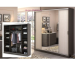 Недорогой шкаф-купе длиной 2 метра и высотой 220 сантиметров с двумя большими зеркалами и тремя отделениями внутри. Шкафы Альянс подходят для спальни и прихожей и позволят разместить большой гардероб: в центре две штанги для одежды на плечиках, справа и слева полки для хранения белья и обувных коробок. шкафы-купе альянс выпускаются фабрикой Стендмебель в нескольких цветовых решениях и размерах, что позволяет подобрать нужный шкаф или комплект шкафов для любого современного интерьера.