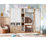 Шкаф пенал с полками для детской комнаты Киви. Пенал с полками и белой матовой дверцей с рельефным рисунком подходит для комплектов детской мебели Киви.