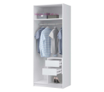 Недорогой 2-створчатый шкаф для одежды со штангой и с двумя ящиками внутри. Современный шкаф белого цвета без зеркал с черной ручкой. Шкаф можно укомплектовать антресолью высотой 40 см.