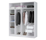 Вместительный 4-створчатый шкаф для одежды со штангами, полками и с двумя ящиками внутри. Современный шкаф белого цвета без зеркал с черной ручкой. Шкаф можно укомплектовать антресолью высотой 40 см.
