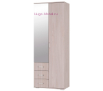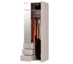 Недорогой двухстворчатый шкаф шириной 80 см с зеркалом и тремя выдвижными ящиками. Шкаф со штангой для одежды, антресольной полкой и 3 ящиками подходит для спальни, детской и гостиной и сочетается с другими шкафами и комодом серии Белла.
