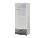 Распашной шкаф с двумя выдвижными ящиками и штангой для одежды. Удобный платяной шкаф из серии мебели в спальню Теана. Шкаф без зеркала в светлом оттенке дерева со вставками из МДФ "мрамор дарк".